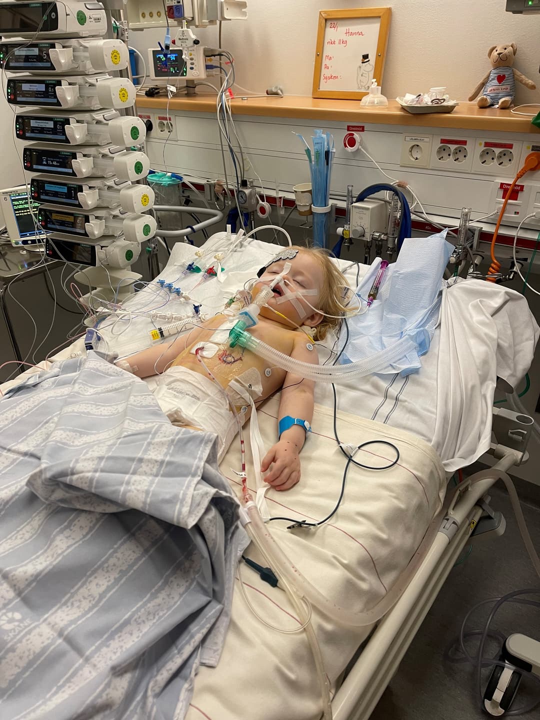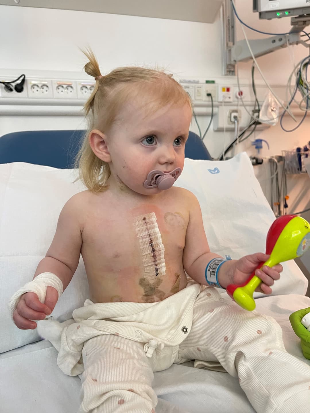 Eftir að læknarnir í Svíþjóð fengu málið til sín var ákveðið að hún þyrfti að fara út í opna hjartaaðgerð. Við flugum út nokkrum dögum fyrir aðgerð til að fara í rannsóknir. Það er ekki hægt að koma því í orð hvernig er að skilja barnið sitt eftir á skurðarborðinu.